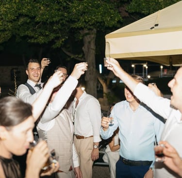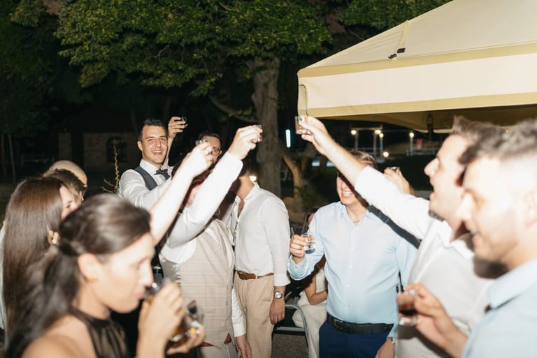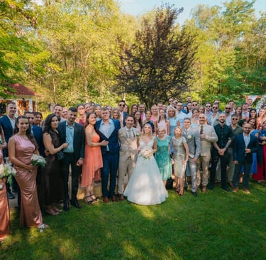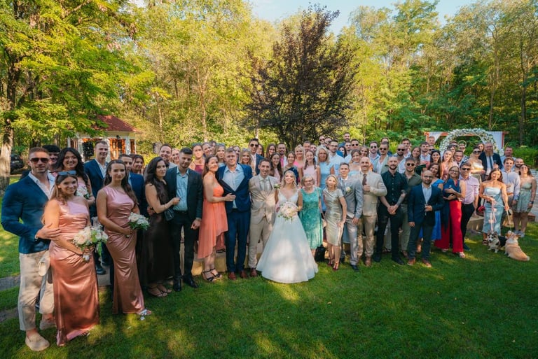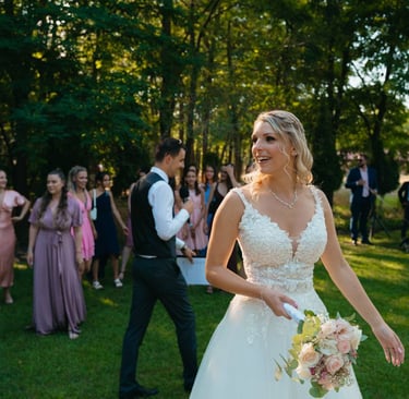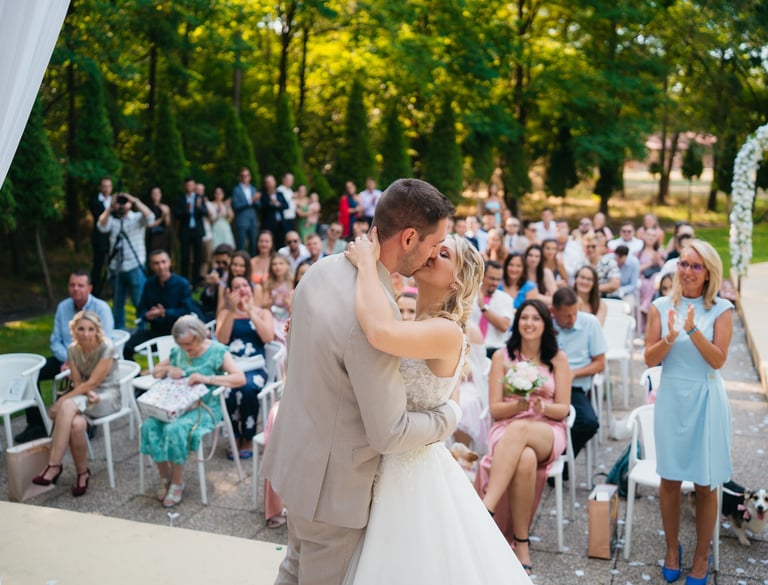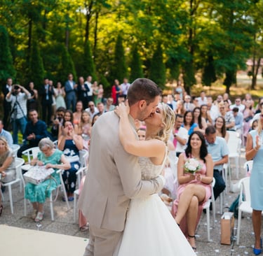 A Nagy Napon gyönyörű tóparti ceremóniával kezdtünk, welcome drink után jöttek a játékok és a vacsora, majd később jött a profi nyitótánc és a koszorúslányoktól a táncshow, majd a hajnalig tartó buli.