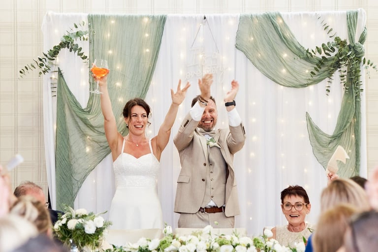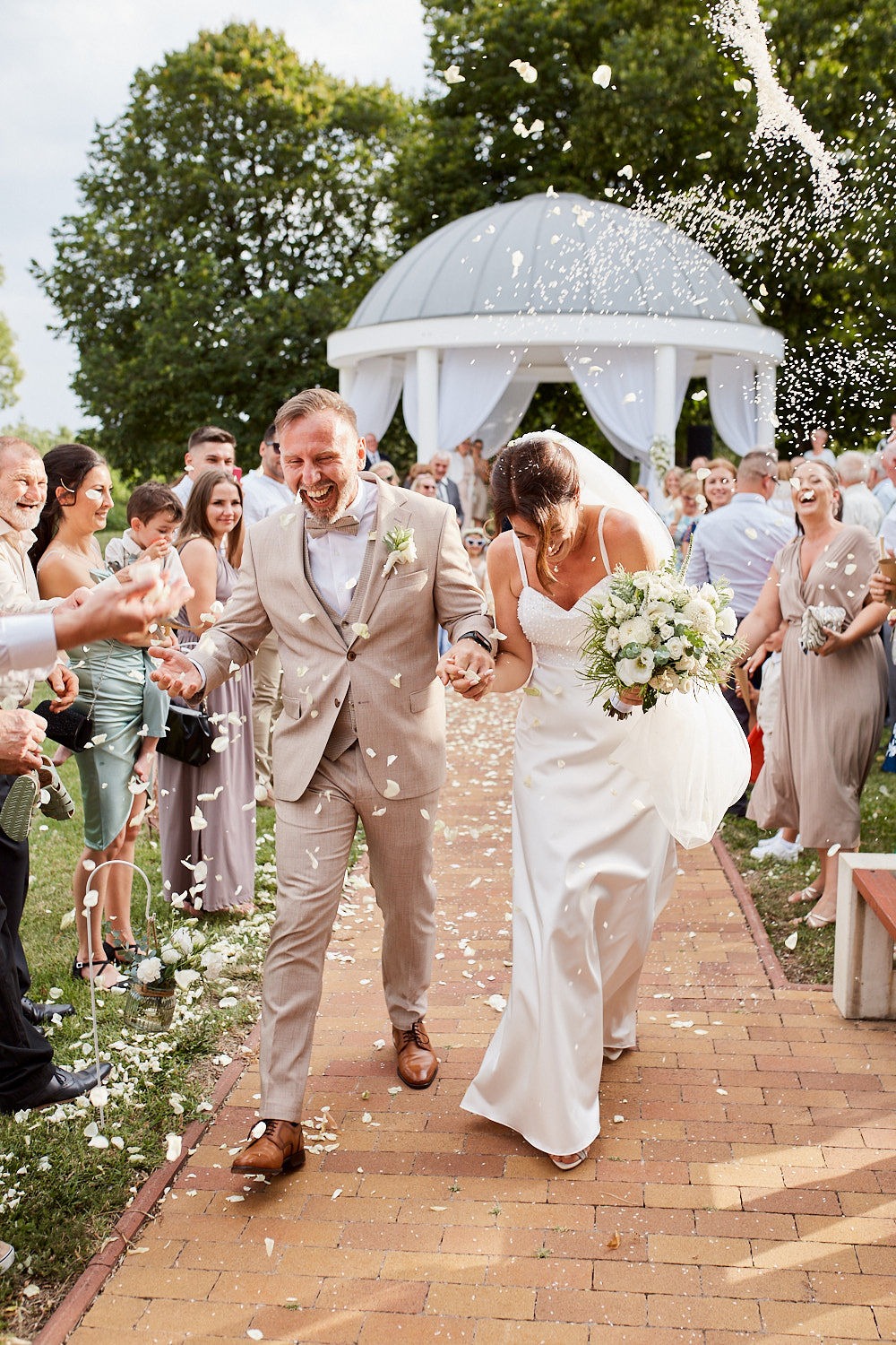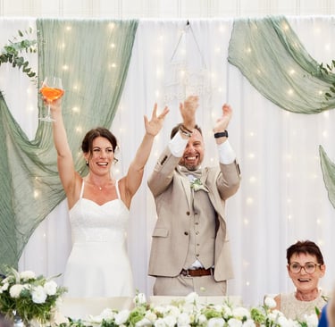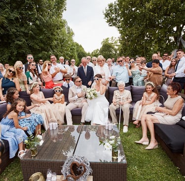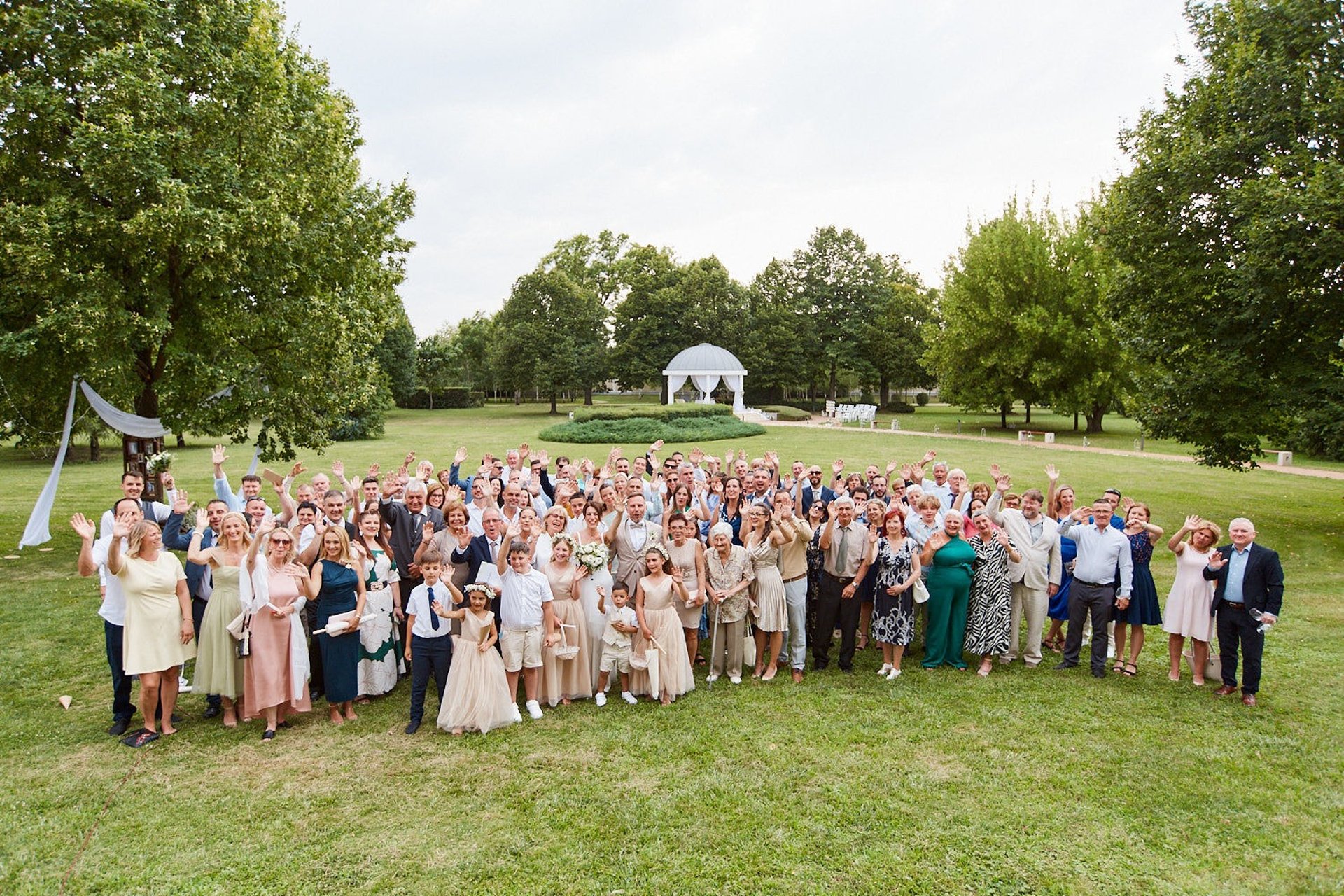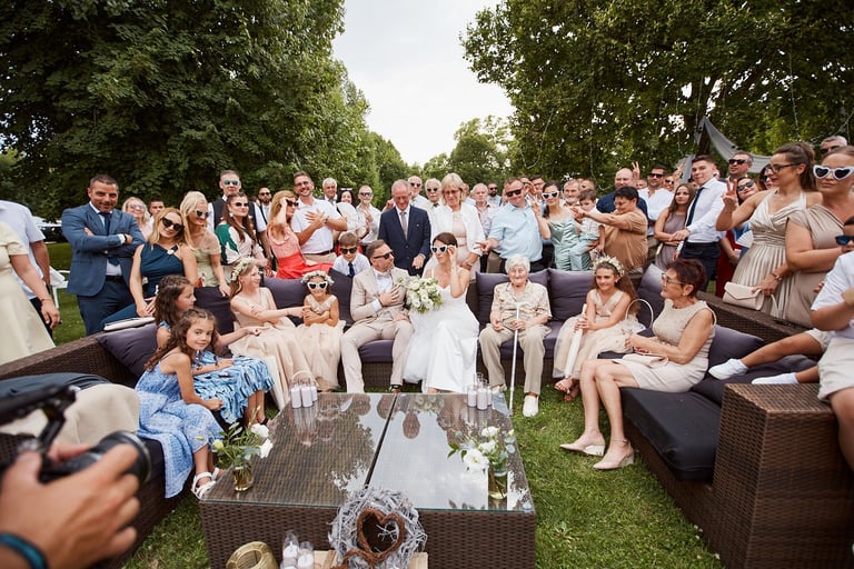 Így még a hirtelen lecsapó vihart is kitudtuk centizni és 0 elázott vendéggel lettek jó kinti képeink, ceremóniánk és pezsgős köszöntésünk.
